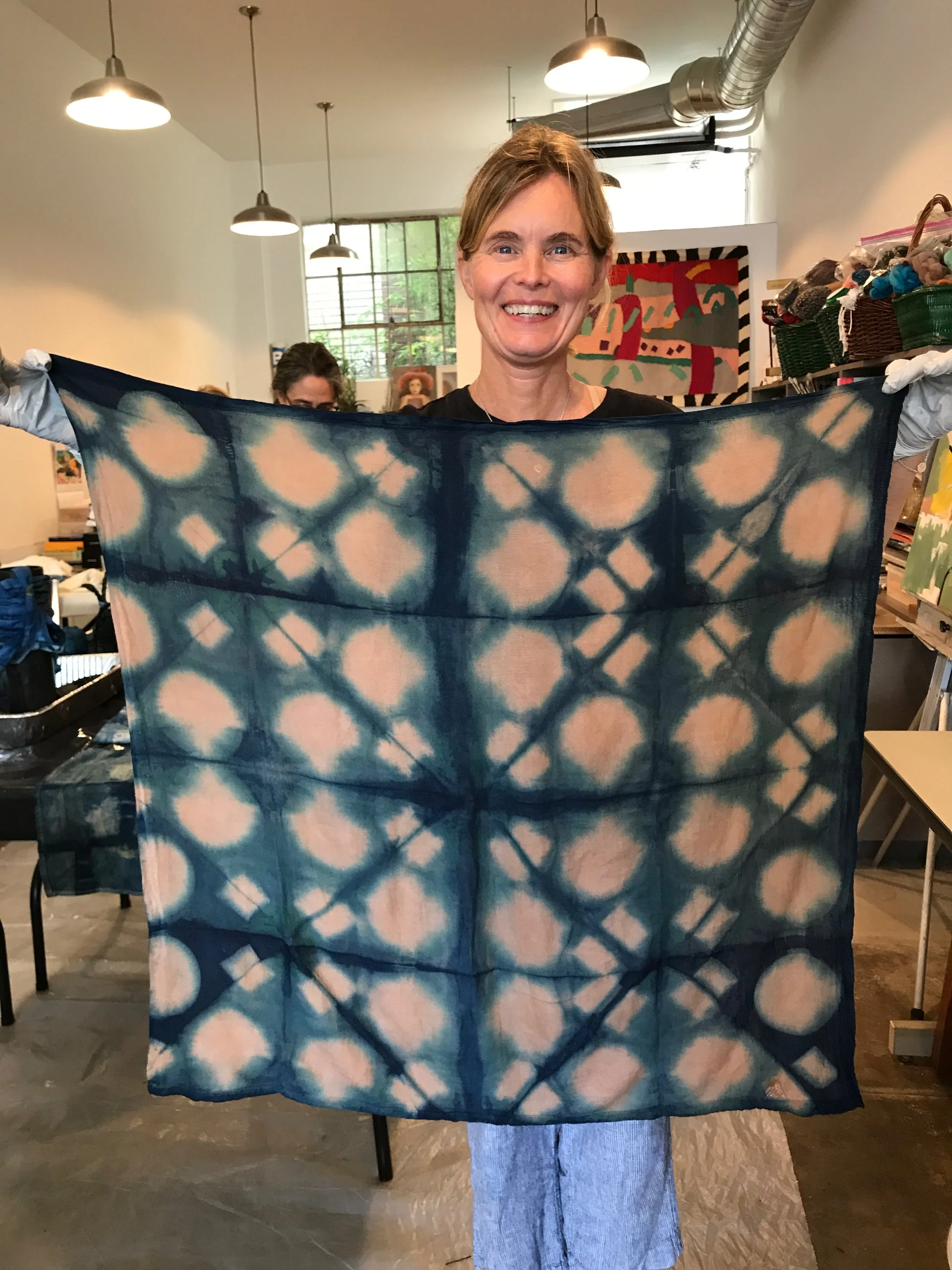 The dye bath will be good for a few days following our Indigo Dyeing & Shibori workshop. If you have attended our Indigo Dyeing class or have Indigo Dyeing experience, please join us for up to 3 hours within the schedule hours to continue the magical fun. Bring no more than 6 pieces of washed 100% natural fibers; cotton, silk, hemp, bamboo, linen or rayon clothing or fabric to dye; scarves, t-shirts, runners, tote bags, napkins, hand towels, bandanas or pieces of fabric 1 yard or smaller. There will be no official instruction during this open studio time.